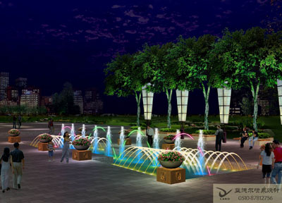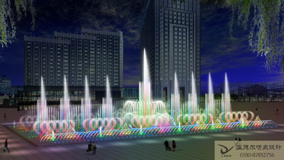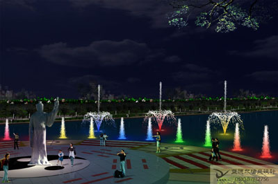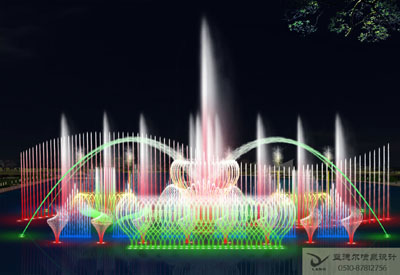 音乐喷泉: 利用播放或现场演奏音乐信号控制喷泉和灯光的喷泉。根据专用的音乐喷泉控制系统使喷水造型变化和灯光的变化随音乐的节奏、旋律的起伏变化而变化,美妙绝伦,同步率可达到±0.02秒,既可以为实时控制,编辑控制,又可以为电脑智能控制。用户可以在编辑界面编写自己喜爱的音乐程序。播放系统可以实现音乐、水、灯光气氛统一,同步播放。