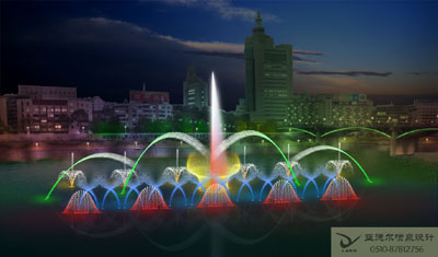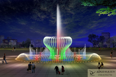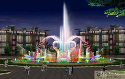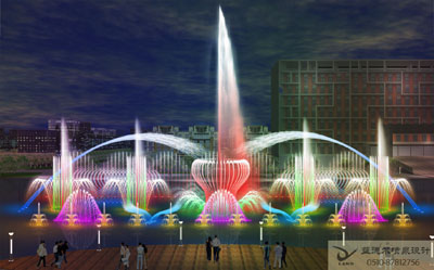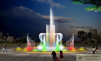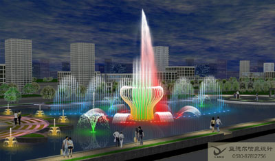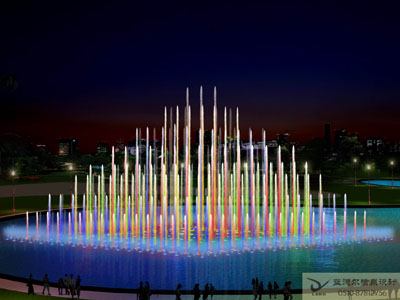音乐喷泉: 利用播放或现场演奏音乐信号控制喷泉和灯光的喷泉。根据专用的音乐喷泉控制系统使喷水造型变化和灯光的变化随音乐的节奏、旋律的起伏变化而变化,美妙绝伦,同步率可达到±0.02秒,既可以为实时控制,编辑控制,又可以为电脑智能控制。用户可以在编辑界面编写自己喜爱的音乐程序。播放系统可以实现音乐、水、灯光气氛统一,同步播放。