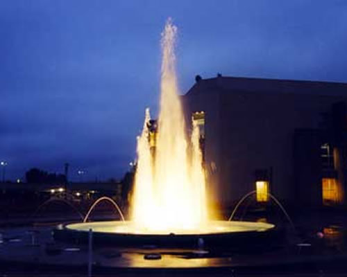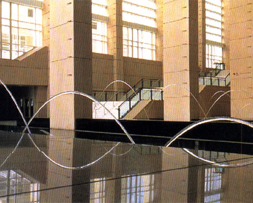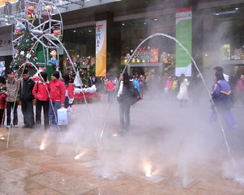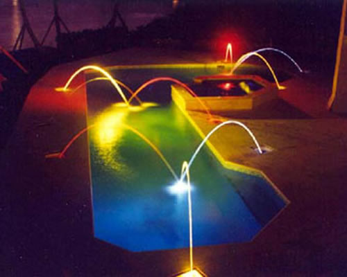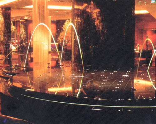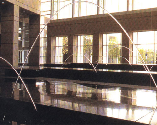 :也称光亮泉弧形波光水线穿池而出。单而高的喷、小而飘逸的泉,更强化了起伏效果,一种轻灵、腾飞之势呼之欲出,从而增加了亲水性,在流动的水面中创造了不同层次的水景,形成颇具特色的景观。