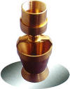 树冰喷头 喷水时外观效果庞大丰满,粗壮挺拔,喷头安装在导流上端与水面水平,喷水时能将池水带出,形成粗大壮观的水柱,抗风力较强。这种喷头广泛用于广场和公共场所喷水池中。